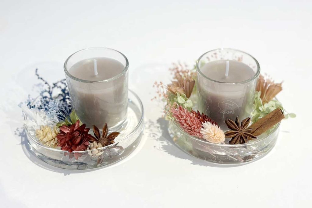 中心に使用するディナーキャンドルは無香料のため、お好みに合わせてSHOPで購入いただき、種類を変更することも可能です。